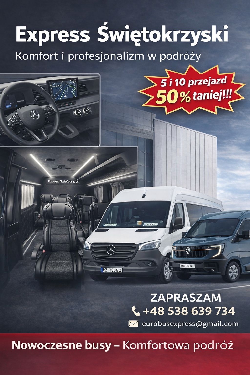 Express Bus to firma zajmująca się transportem międzynarodowym osób oraz paczek, oferująca wygodne i bezpieczne przejazdy do Niemiec, Austrii, Belgii i Holandii. Nasza codzienność to komfortowe podróże, które łączą szybkość z najwyższymi standardami bezpieczeństwa. Z nami dotrzesz do celu w sposób wygodny i bezstresowy. Express Bus to firma zajmująca się transportem międzynarodowym osób oraz paczek, oferująca wygodne i bezpieczne przejazdy do Niemiec. Nasza codzienność to komfortowe podróże, które łączą szybkość z najwyższymi standardami bezpieczeństwa. Z nami dotrzesz tam, gdzie chcesz, w komfortowych warunkach, zawsze na czas! W Express Bus dbamy o to, aby każda podróż była przyjemnością, dlatego zatrudniamy tylko doświadczonych i wykwalifikowanych kierowców, którzy zapewnią Państwu pełne bezpieczeństwo w trakcie podróży. Nasza nowoczesna flota pojazdów to gwarancja komfortu i niezawodności, a także dbałości o każdy szczegół. Oferujemy door-to-door service – odbieramy naszych pasażerów bezpośrednio z ustalonego adresu i dowozimy ich do wyznaczonego celu, eliminując konieczność przesiadek. Z Express Bus podróżujesz wygodnie i bez zbędnych komplikacji, ciesząc się każdą chwilą drogi. Zapraszamy do skorzystania z naszych usług transportowych – Express Bus to wybór, na którym zawsze możesz polegać.